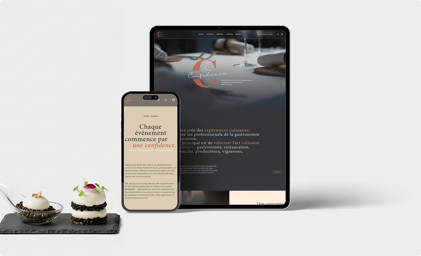 Nous avons conçu le site en-confidence.fr comme un écrin digital : élégant, immersif et minimaliste. Un site qui ne montre pas tout, mais invite à entrer.